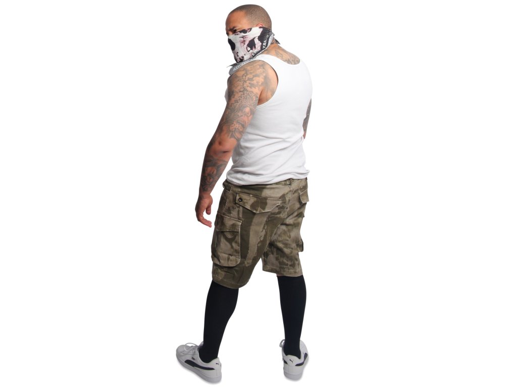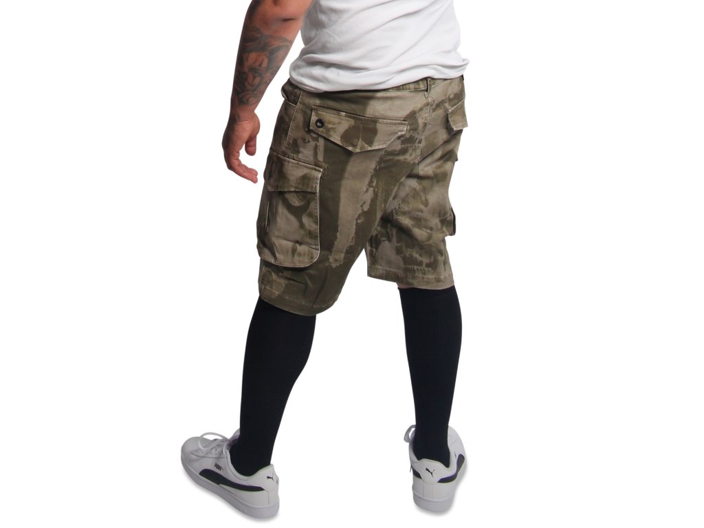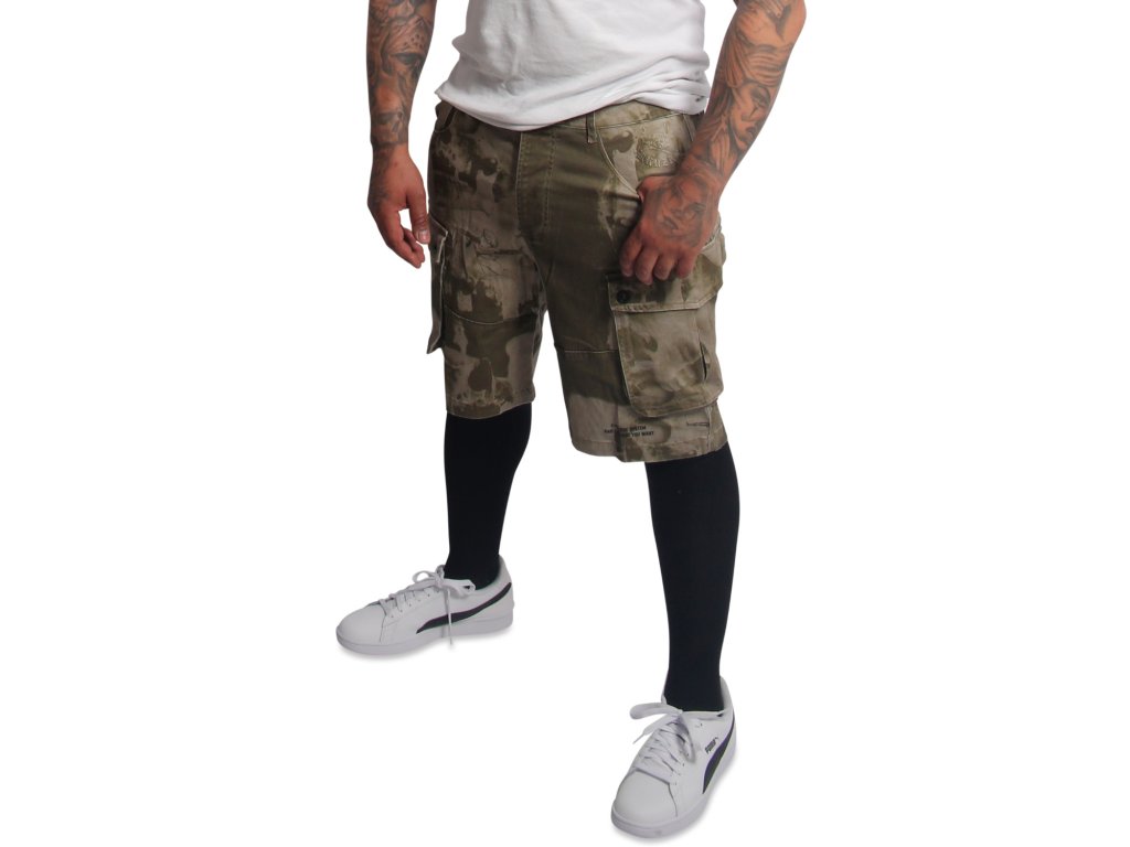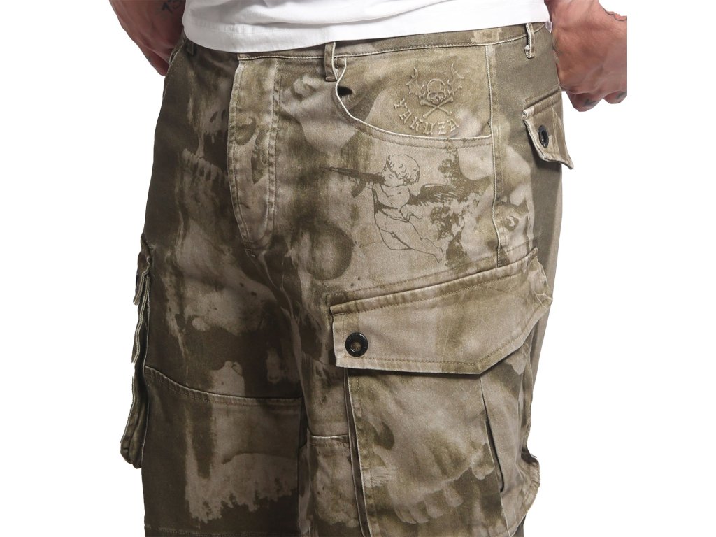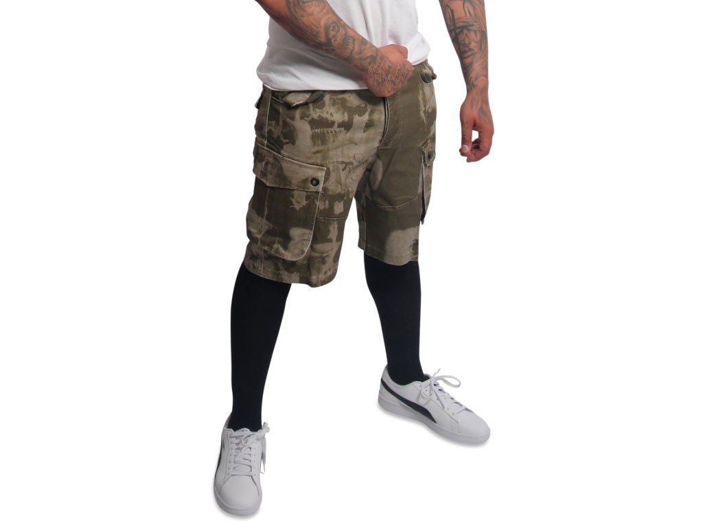 YAKUZA CRASHED SKULL pánské cargo kraťasy – burnt olive