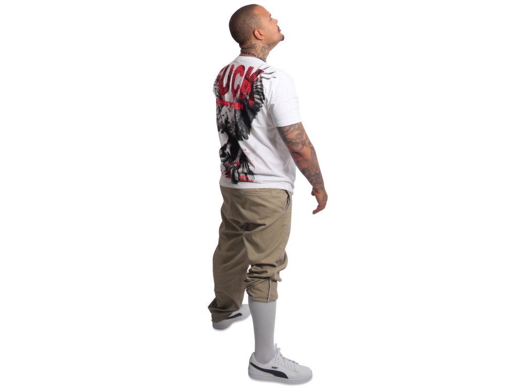 Objev pohodlí a styl v jednom s pánským tričkem YAKUZA EAGLE. Tento měkký kousek z kvalitního středně silného žerzeje z česané bavlny nabízí ležérní střih, který se hodí pro každodenní nošení. Krátké rukávy, žebrovaný kulatý výstřih a vintage potisk dodávají tričku jedinečný charakter.
